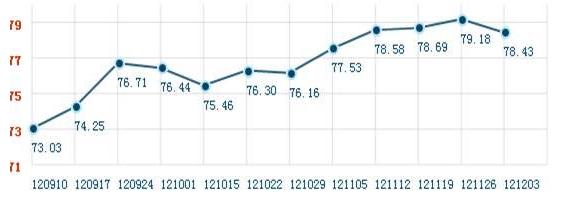 本期手機價格指數報點78.43點,下跌0.75點,跌幅0.95%。國內品牌手機價格指數繼續高位震蕩,跌幅0.75%;而國外品牌跌幅較大,本期下跌1.31%。