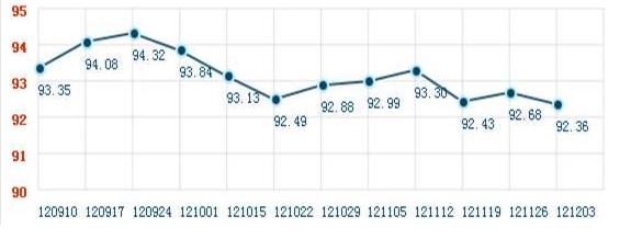 IT產品價格指數低位震蕩,本期報點92.36點,下跌0.32點,跌幅0.35%。從IT產品的四大分類來看,外部設備和電腦配件價格指數上漲,整機產品和網絡設備指數則下跌。整機產品指數下跌0.84%,平板電腦、臺式PC和筆記本全線走低,跌幅分別是4.32%、1.17%和0.13%。