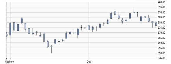 行業方面,11月份北美半導體設備制造商訂單出貨比為0.79,較10月份的0.75有所回升,這也是該值時隔7個月之后首度回升。費城半導體指數最終收于376.87點,全周合計下跌8.72點,跌幅2.26%: