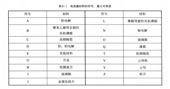 電容器材料的符號(hào)意義對(duì)照表如表5-1所示。